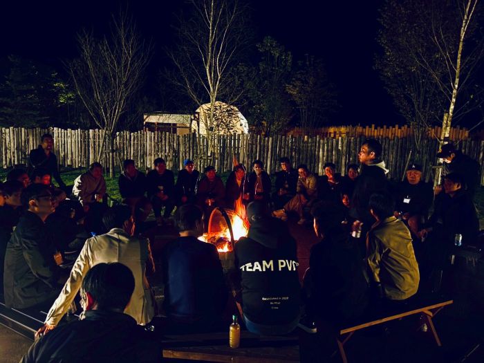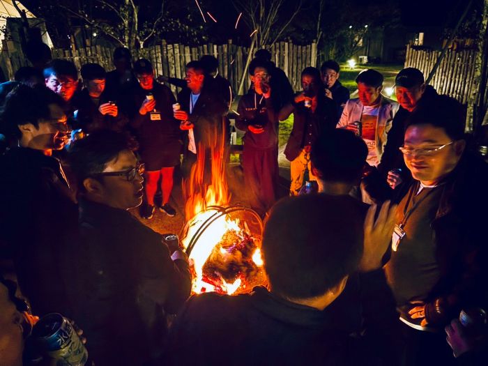 懇親会の後は焚き火を囲み、塾生たちの目標や夢を語り合いました。
