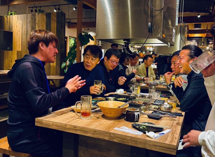 東日本大震災でのホット横丁石巻出店に関するお話や、原価高騰による値上げを行った結果顧客の信頼を失ってしまったお話、タコの仕入れをするために訪れたアフリカで銃を突き付けられたお話など、様々なお話をお伺いできました。